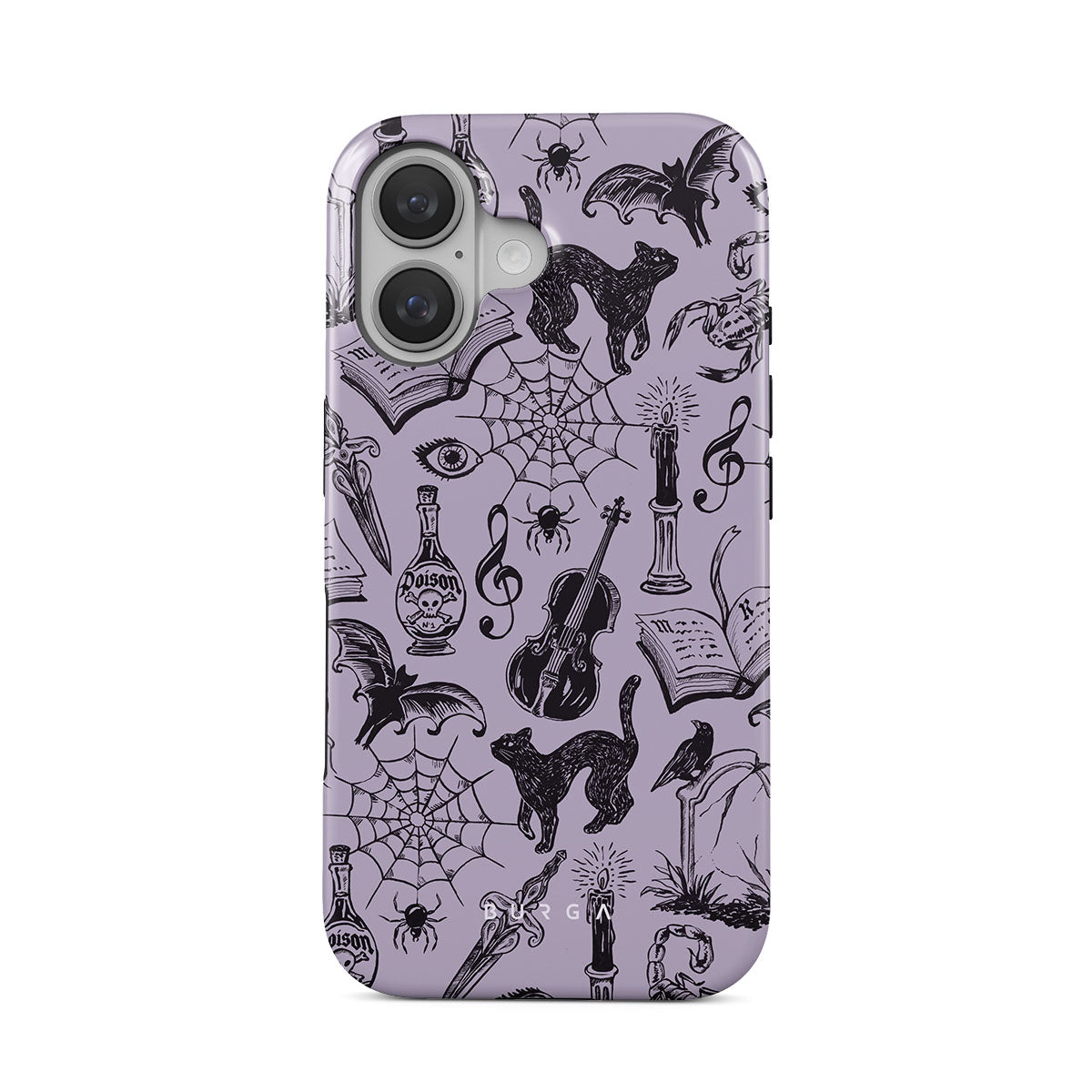 Questo design include: scarabocchi gotici, elementi misteriosi, ragni, ragnatele, gatto, violino, occhio, candela, pugnale, libro, pipistrello, corvo, scorpione