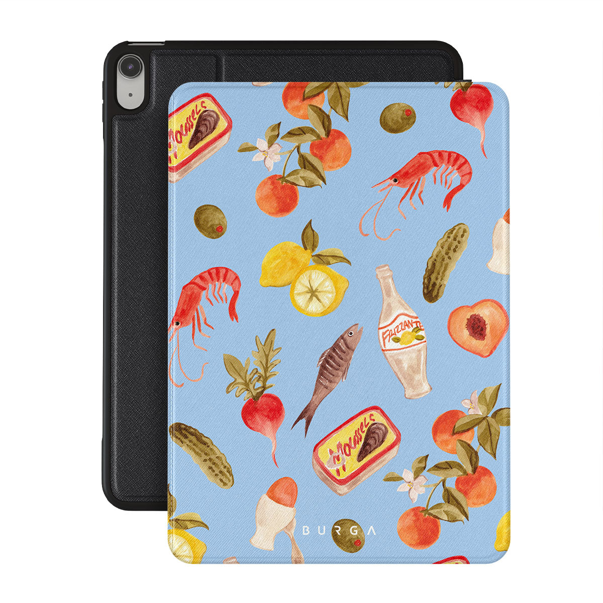 Questo design include: Granchi di fiume, agrumi, picnic, limone, uovo, sottaceti, verdure fresche, elementi da spiaggia, pesche, fiori, olive.