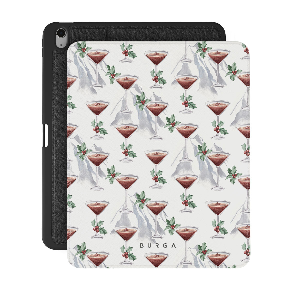 Questo design include: bicchieri da cocktail, martini, foglie di agrifoglio