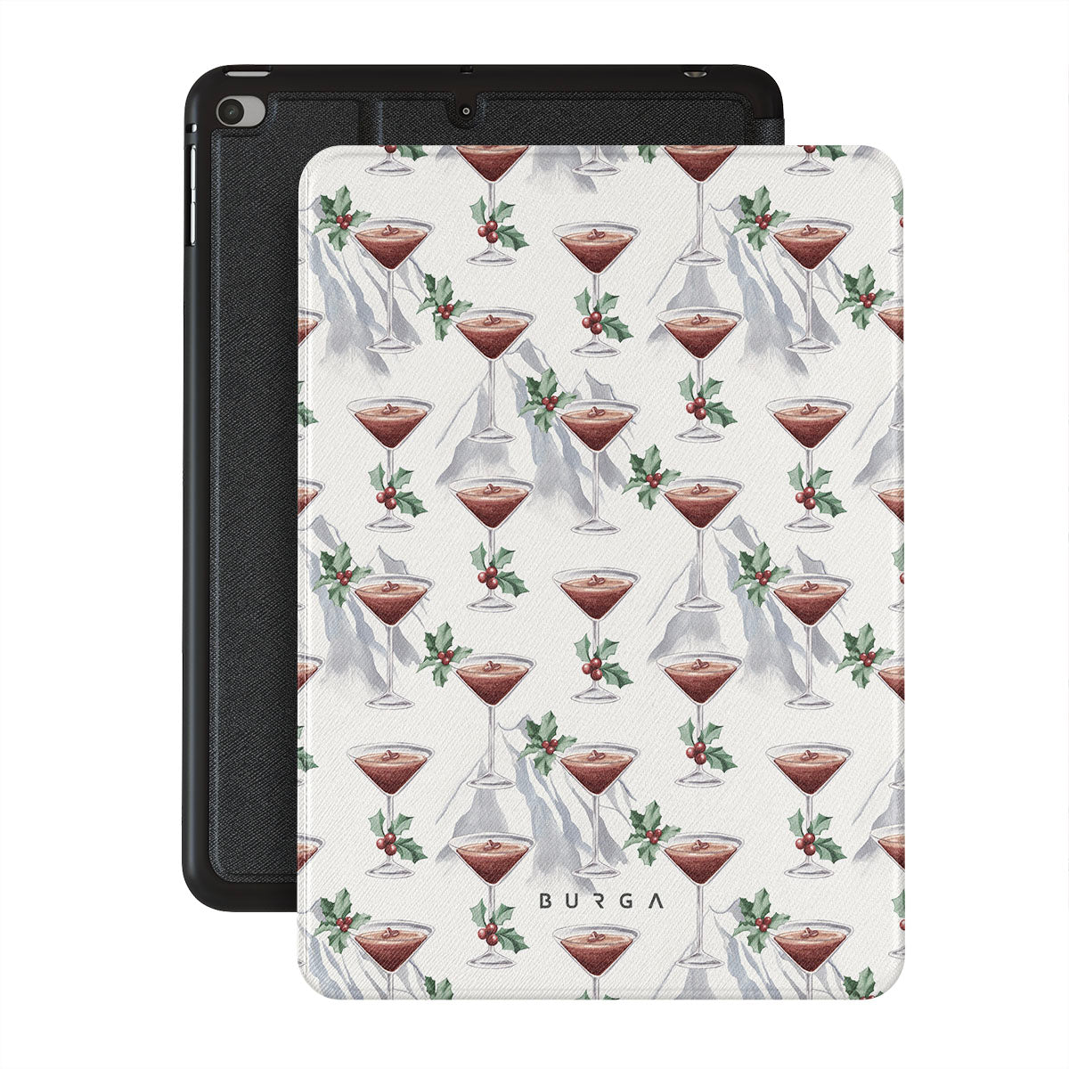 Questo design include: bicchieri da cocktail, martini, foglie di agrifoglio