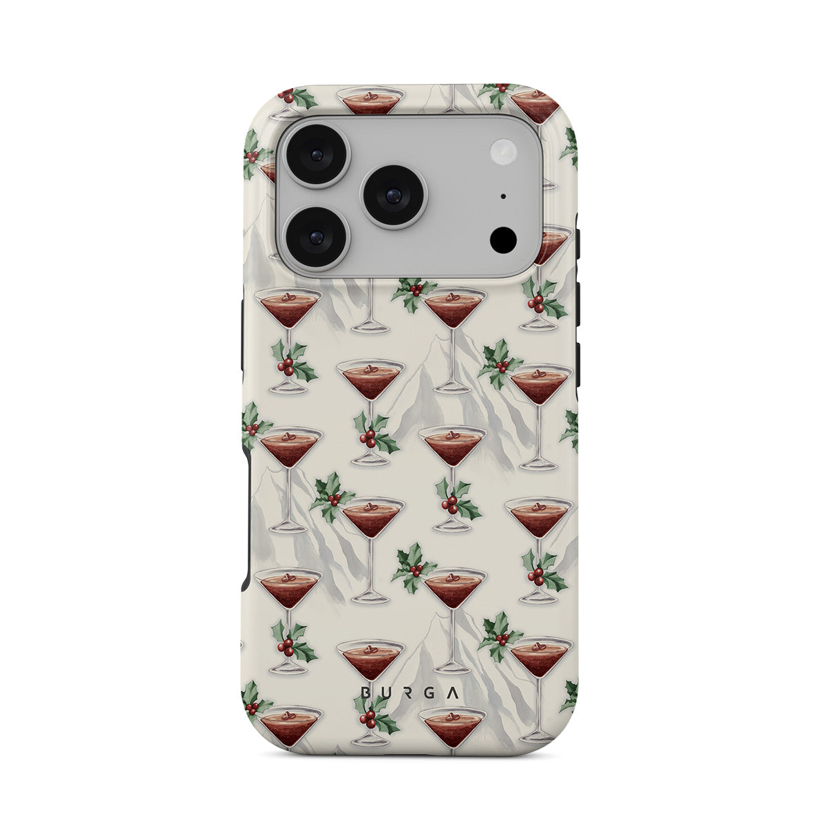 Questo design include: bicchieri da cocktail, martini, foglie di agrifoglio