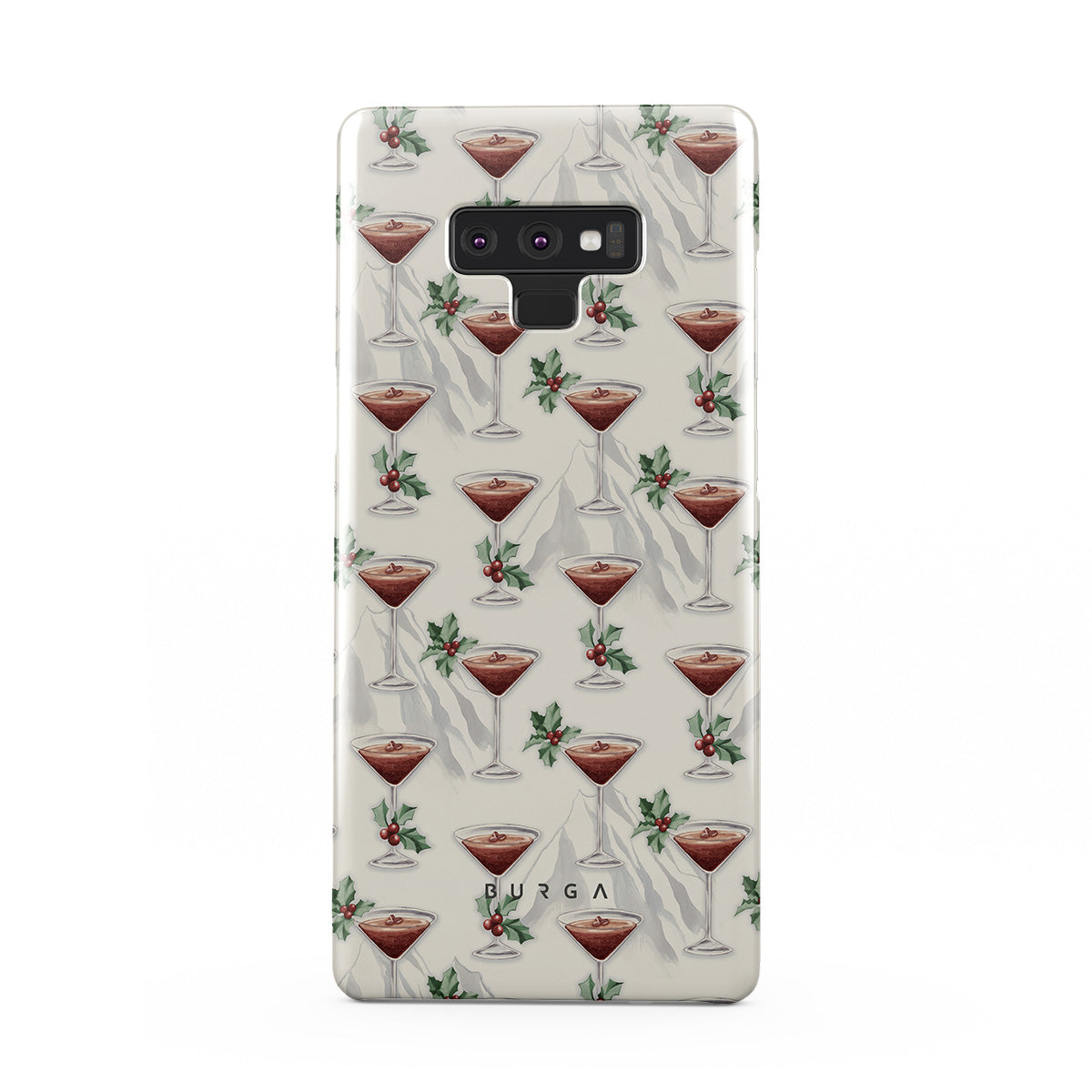 Questo design include: bicchieri da cocktail, martini, foglie di agrifoglio