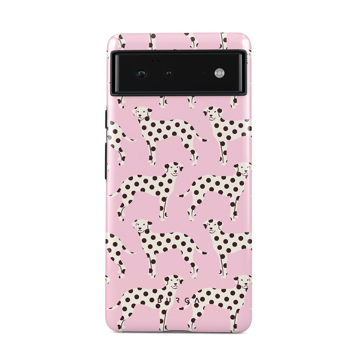 Questo design include: dalmata su sfondo rosa chiaro.