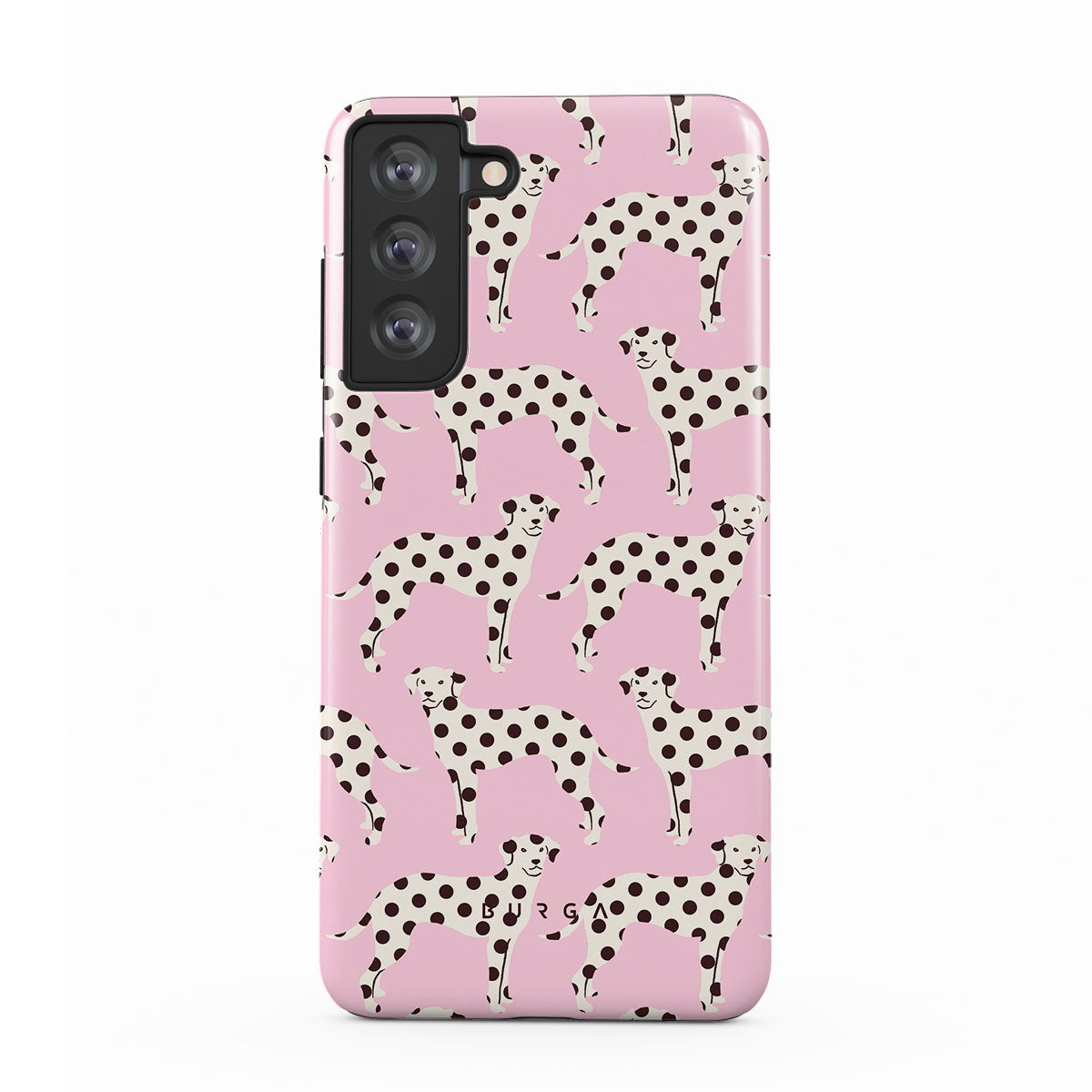 Questo design include: dalmata su sfondo rosa chiaro.