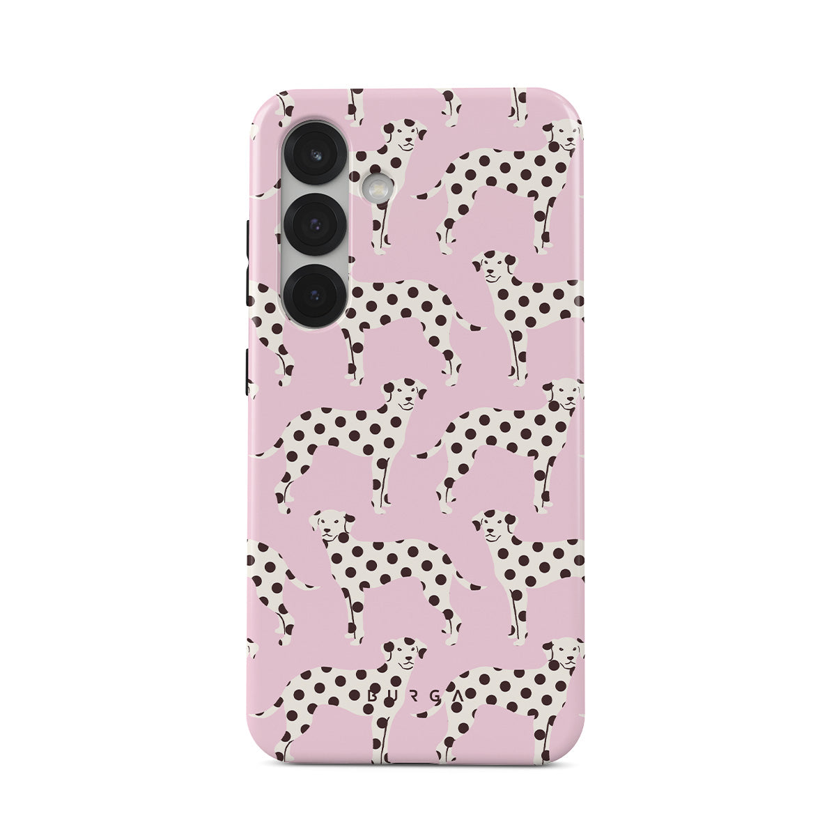 Questo design include: dalmata su sfondo rosa chiaro.