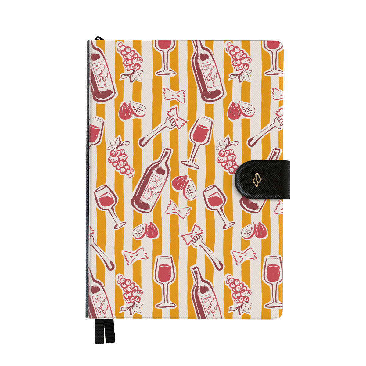 La sua elegante copertina in pelle saffiano vegan, abbinata alla chiusura magnetica, protegge le pagine da eventuali schizzi di caffè e dai piccoli inconvenienti della vita quotidiana.