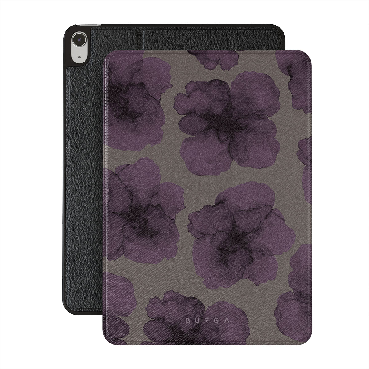 Questo design include: fiori scuri, fiori viola, petali violacei.