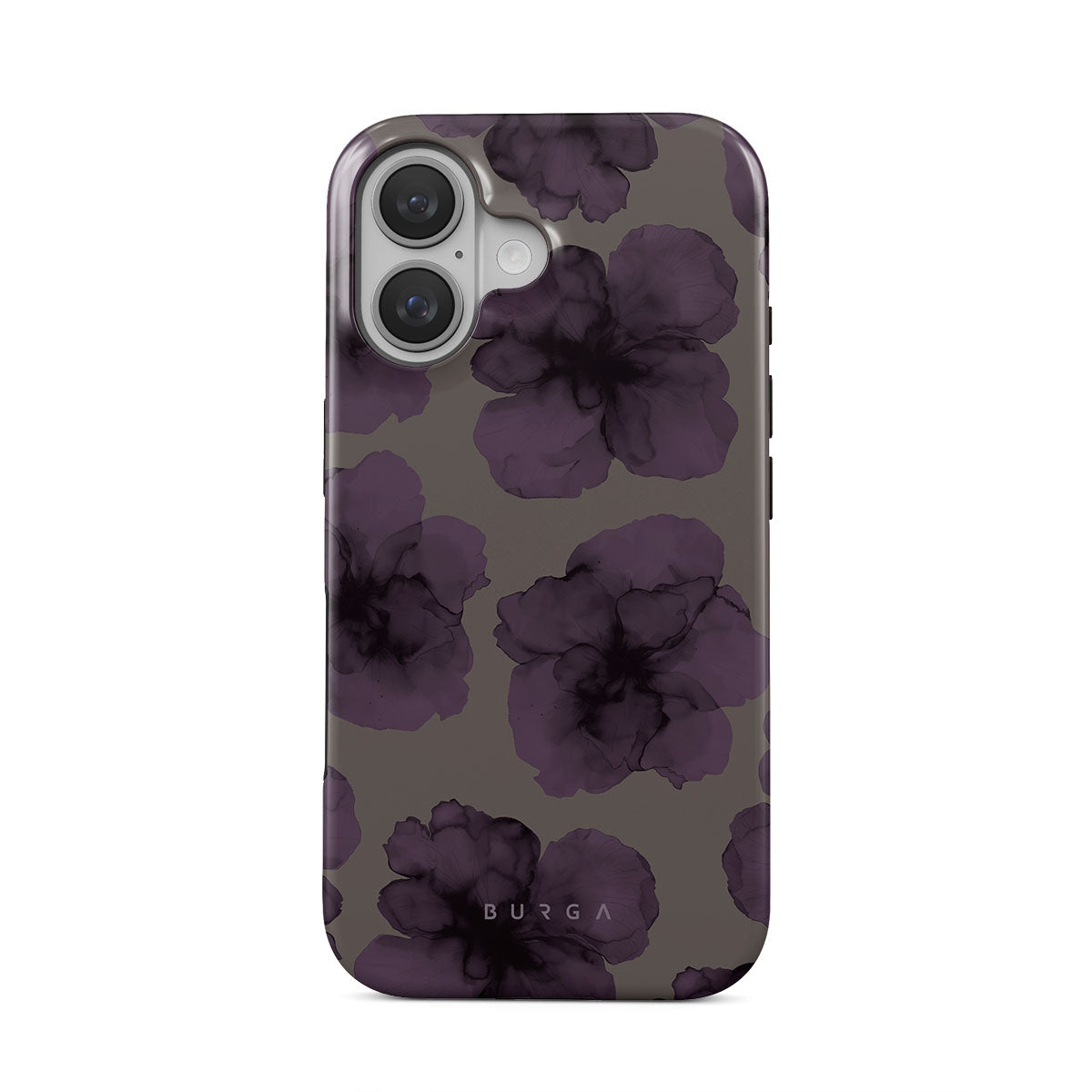 Questo design include: fiori scuri, fiori viola, petali violacei.