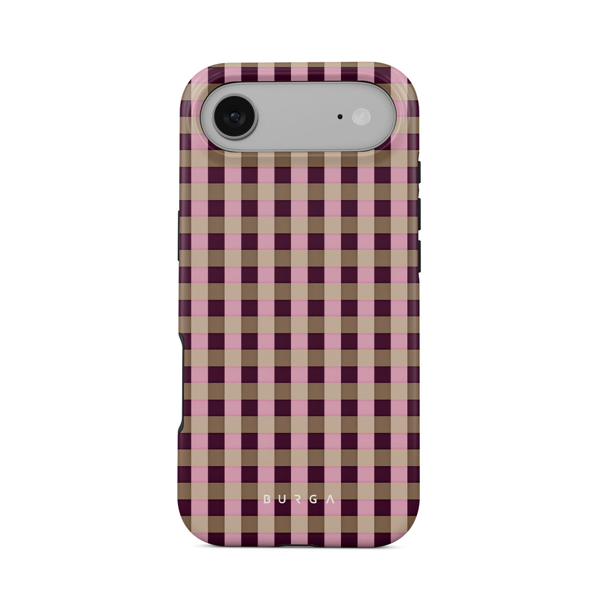 Questo design include: un motivo a quadri rosa e bordeaux, stile moderno.