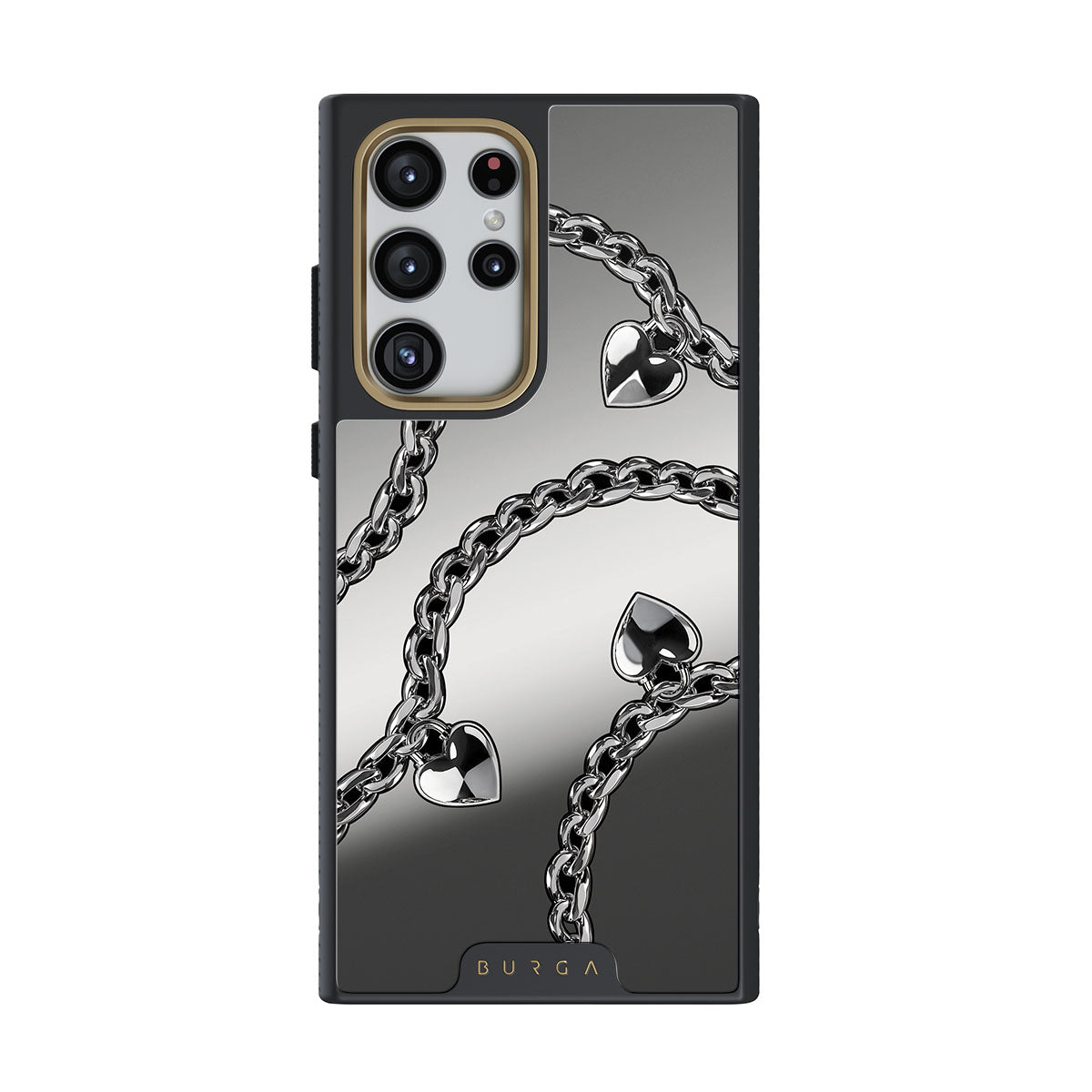Questo design include: catene, cuori, argento, dettagli metallici, specchio