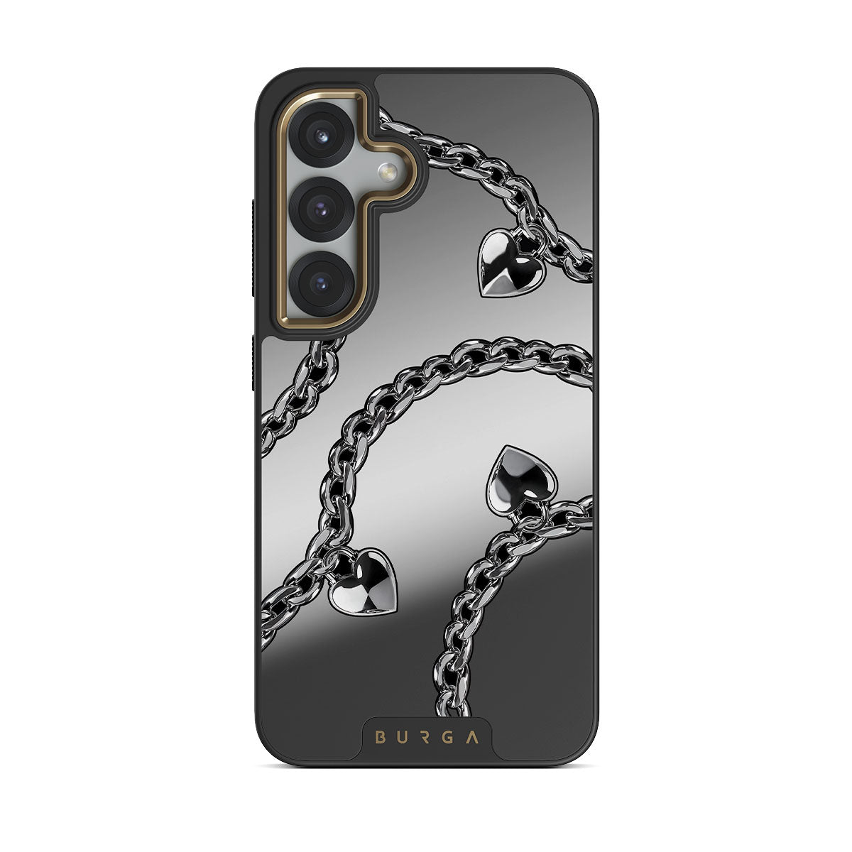 Questo design include: catene, cuori, argento, dettagli metallici, specchio