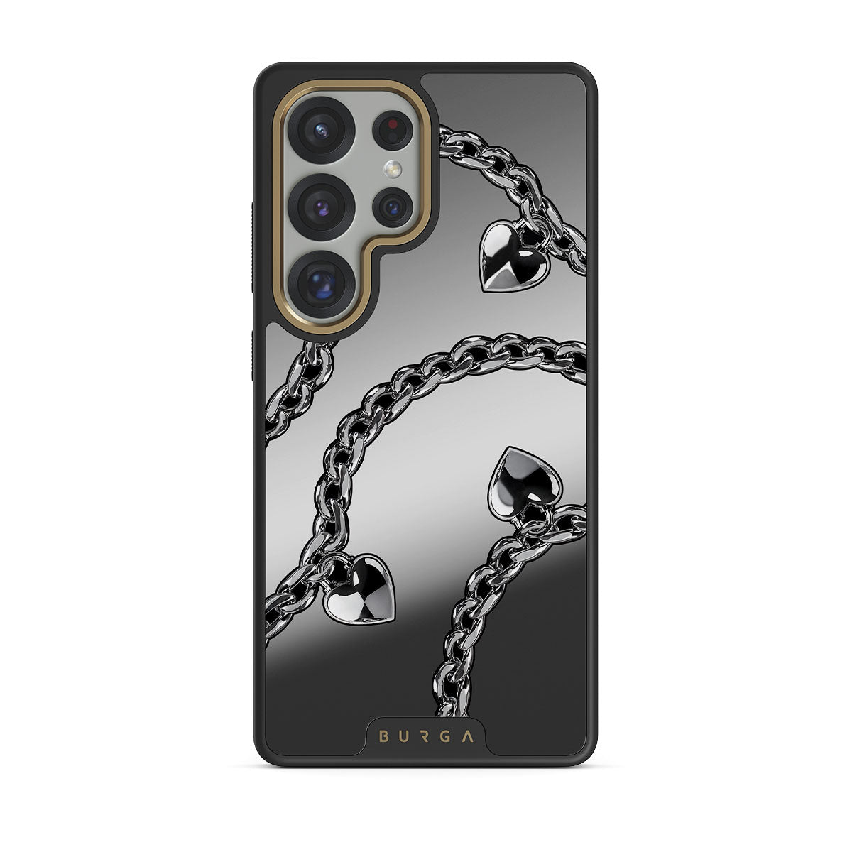 Questo design include: catene, cuori, argento, dettagli metallici, specchio