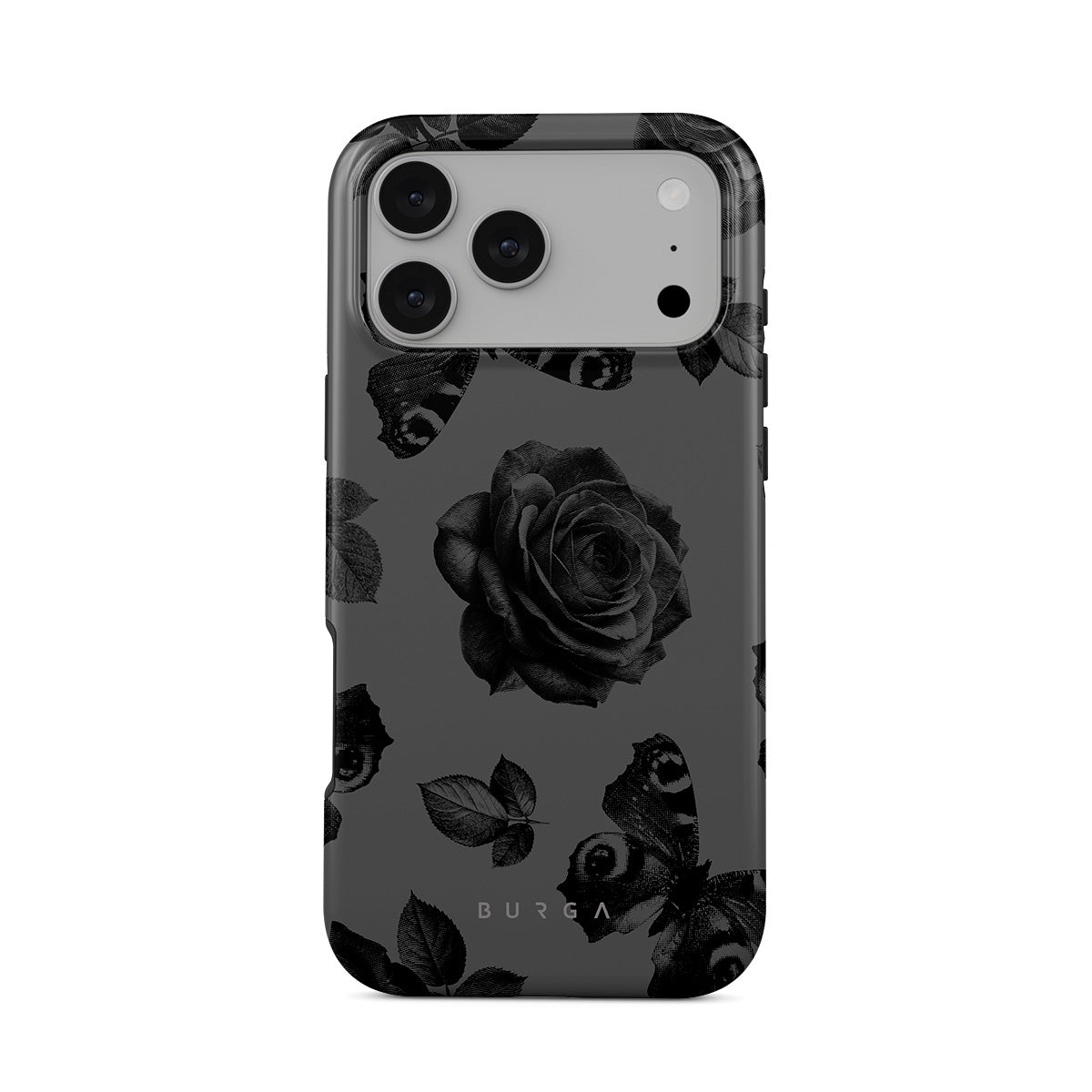 Questo design include: rose nere, fiori gotici, tonalità cupe.