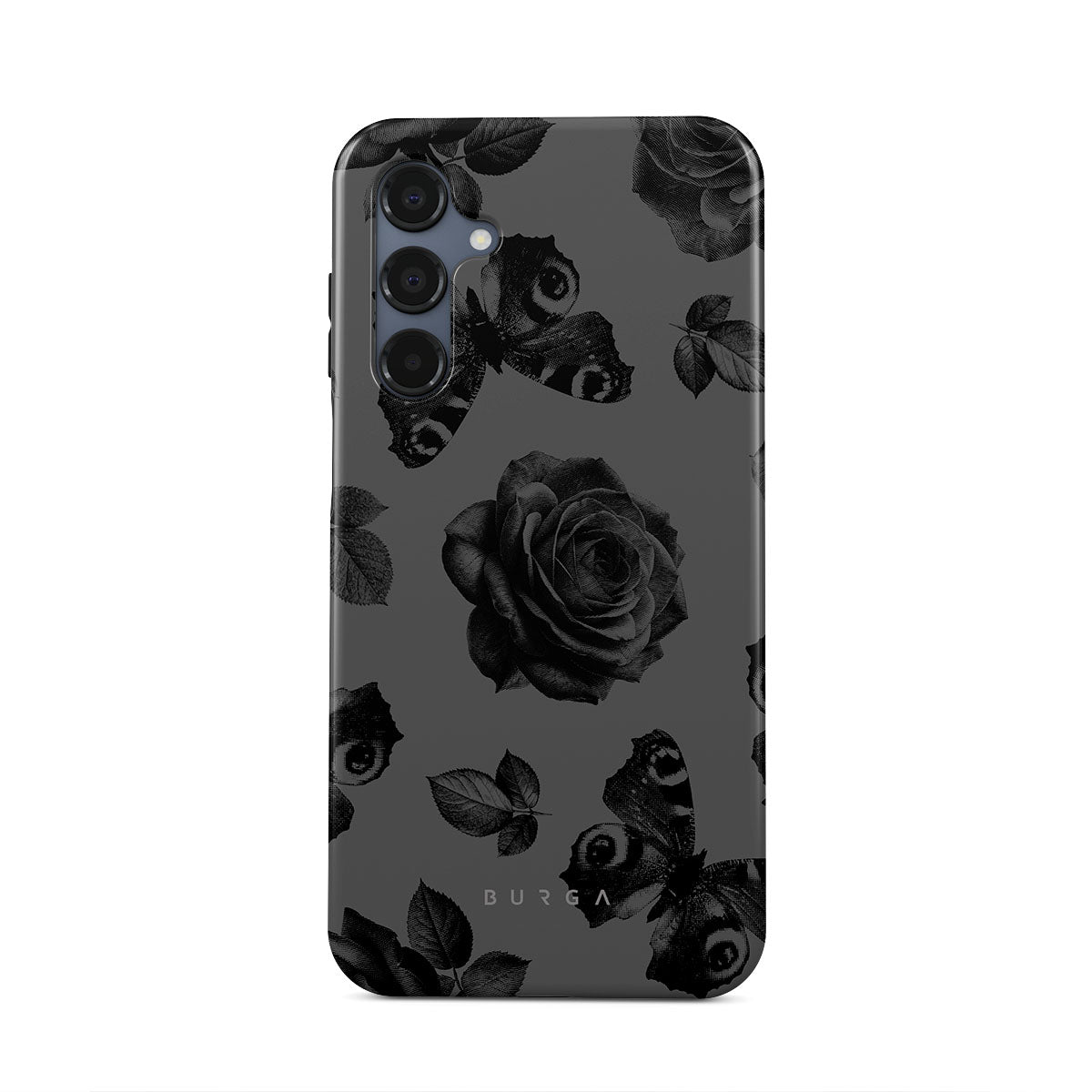 Questo design include: rose nere, fiori gotici, tonalità cupe.