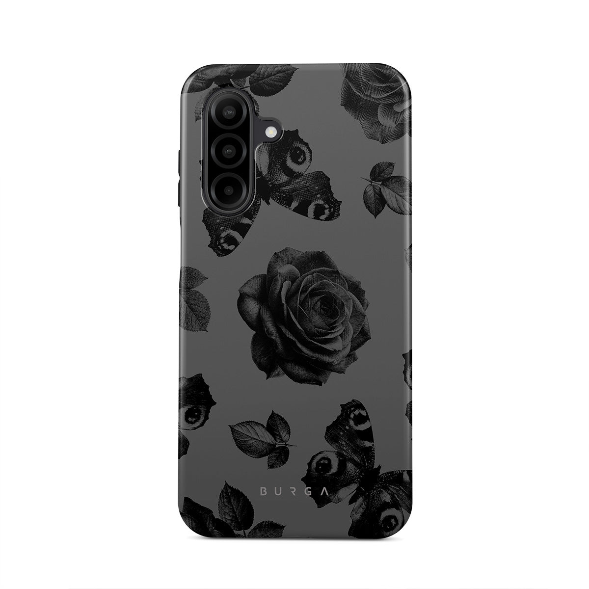 Questo design include: rose nere, fiori gotici, tonalità cupe.