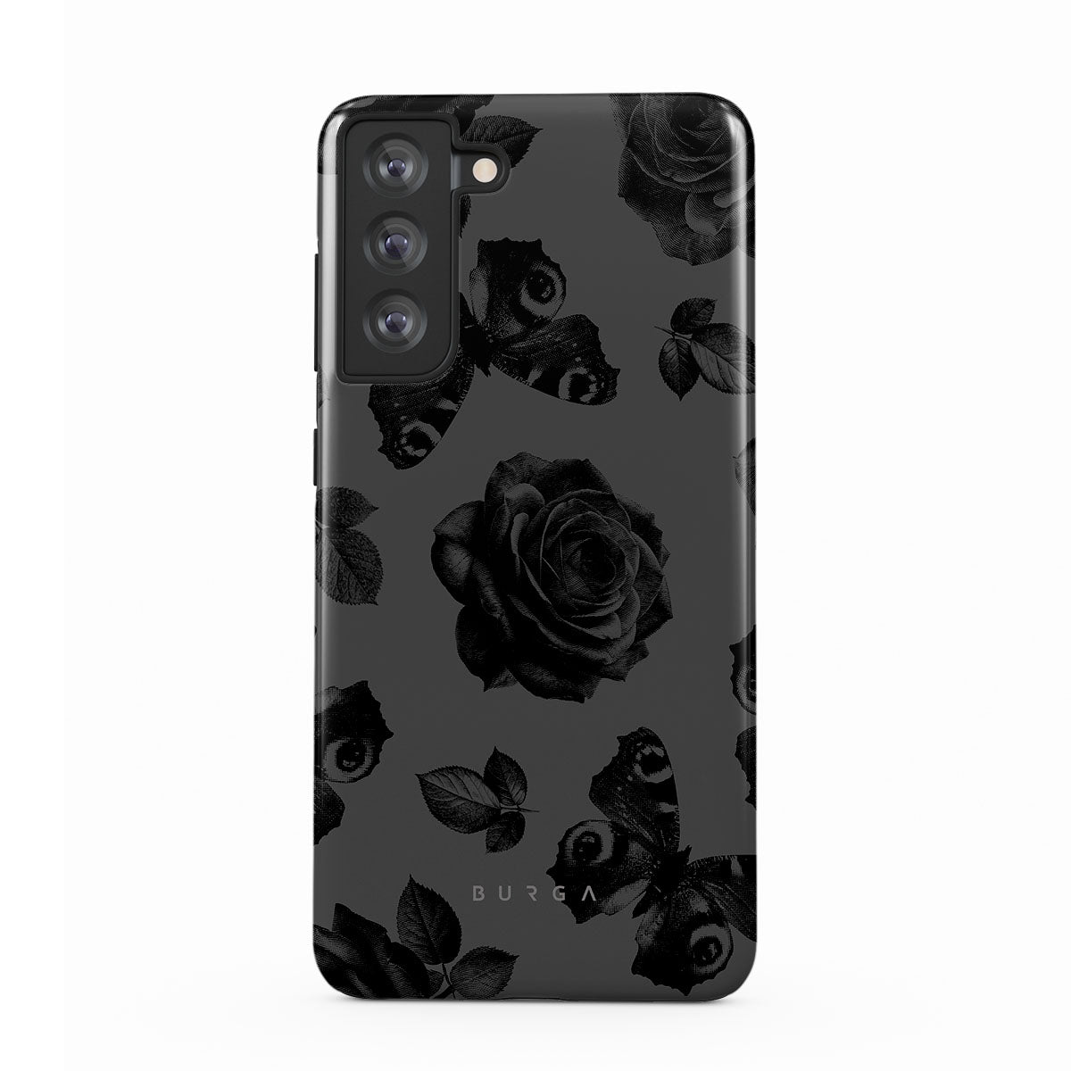 Questo design include: rose nere, fiori gotici, tonalità cupe.