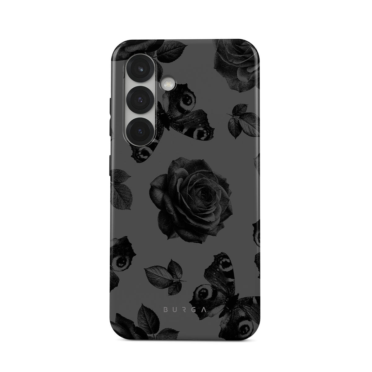 Questo design include: rose nere, fiori gotici, tonalità cupe.