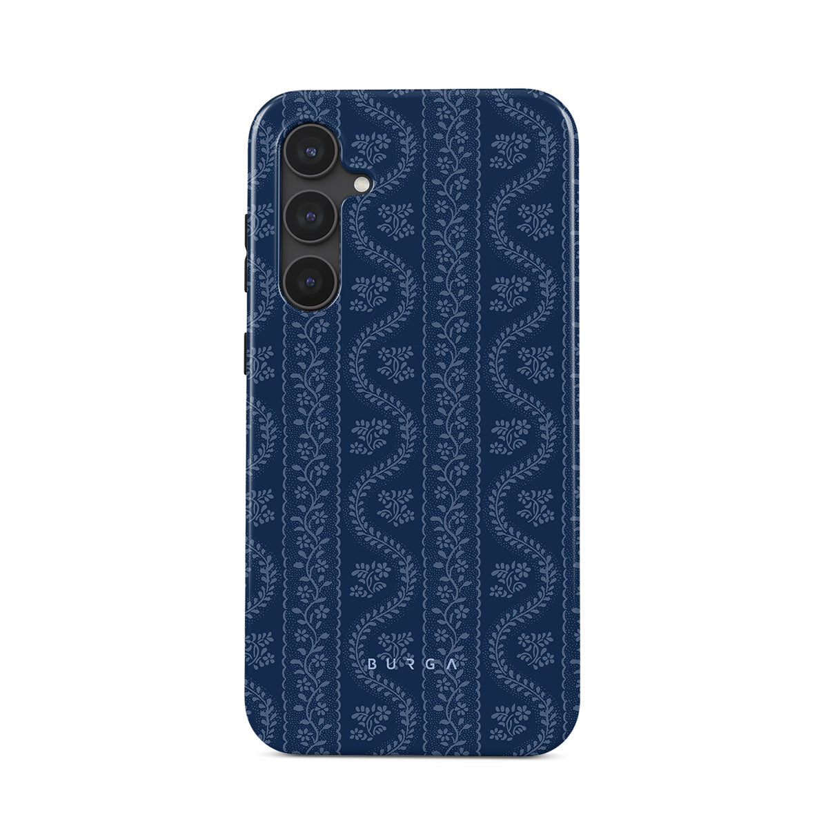 Questo design include: motivo paisley, effetto denim, stile vintage, pattern classico, motivi intricati, sfumature di bluInizio modulo