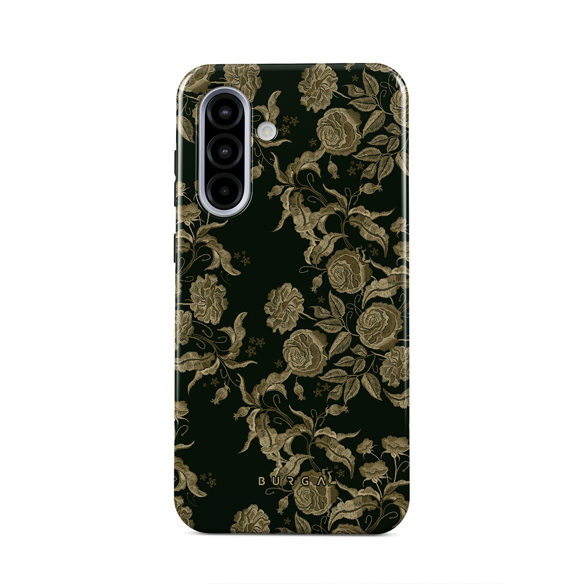 Questo design include: rose vintage, fogliame dorato, tonalità di verde intenso.