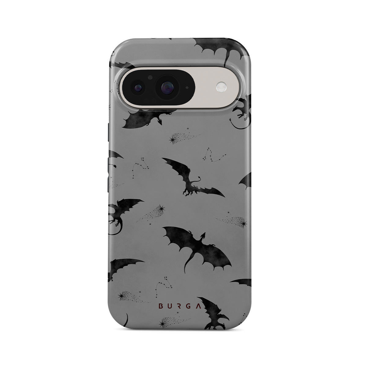 Questo design include: pipistrelli, draghi, cielo grigio, cieli notturni, creature oscure.
