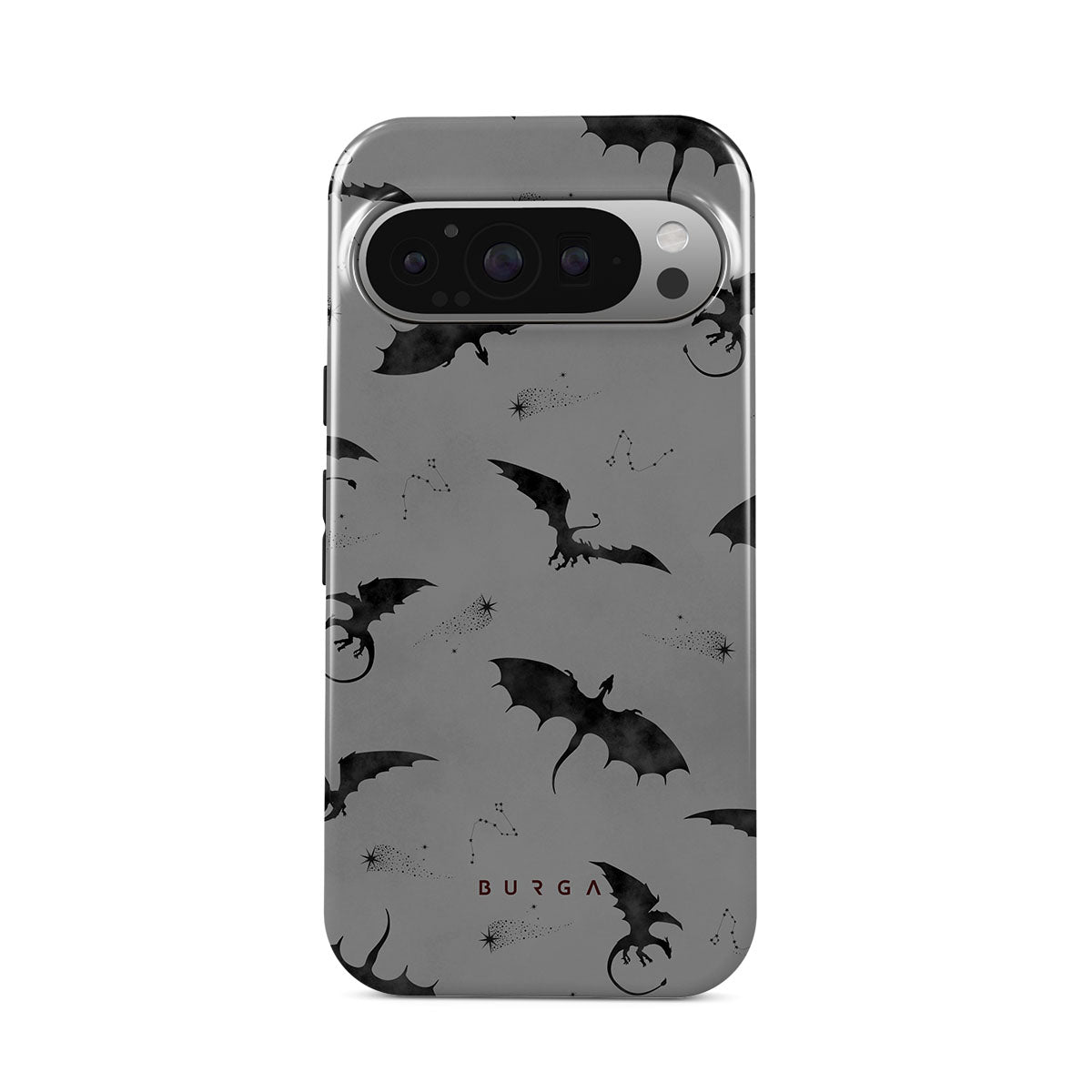 Questo design include: pipistrelli, draghi, cielo grigio, cieli notturni, creature oscure.