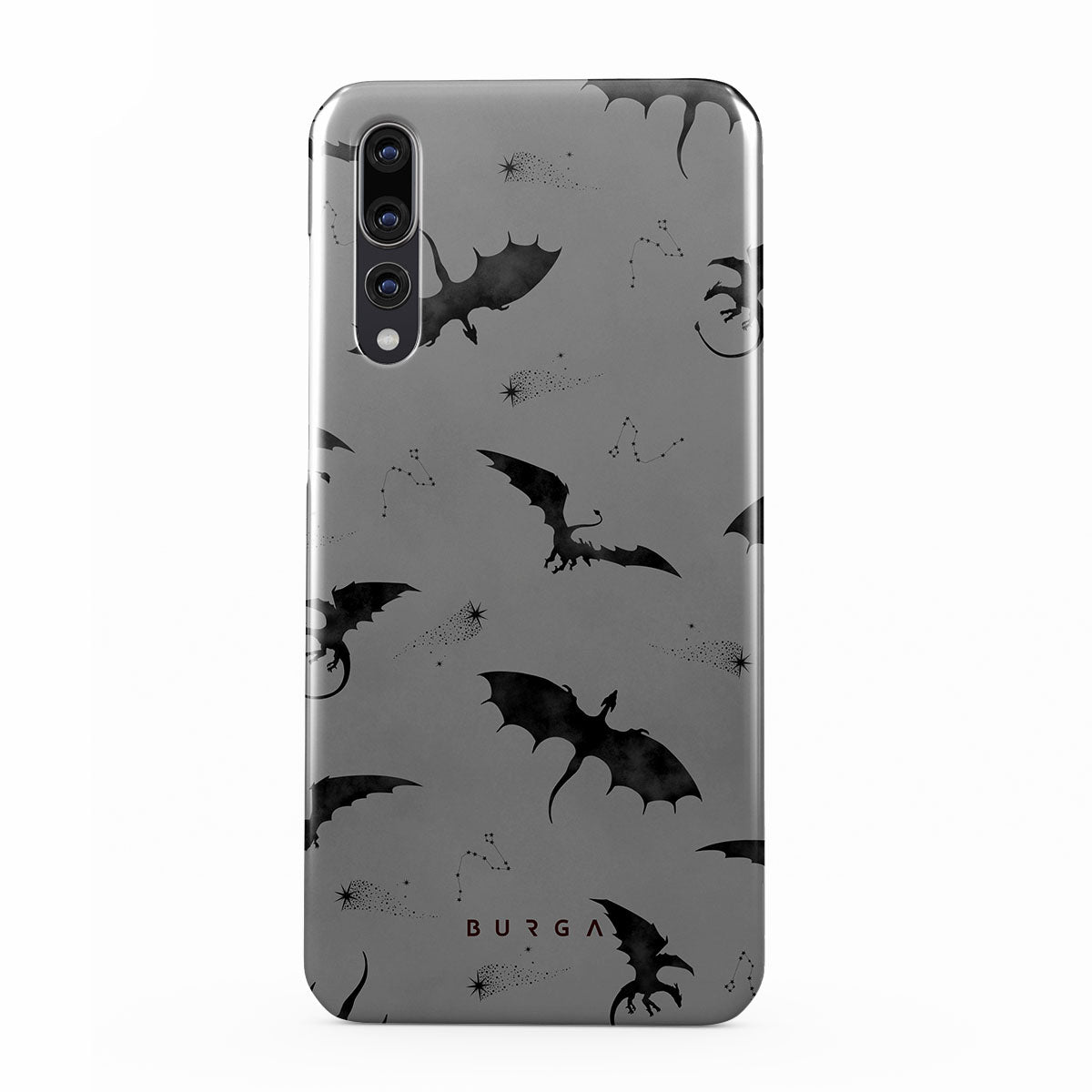 Questo design include: pipistrelli, draghi, cielo grigio, cieli notturni, creature oscure.