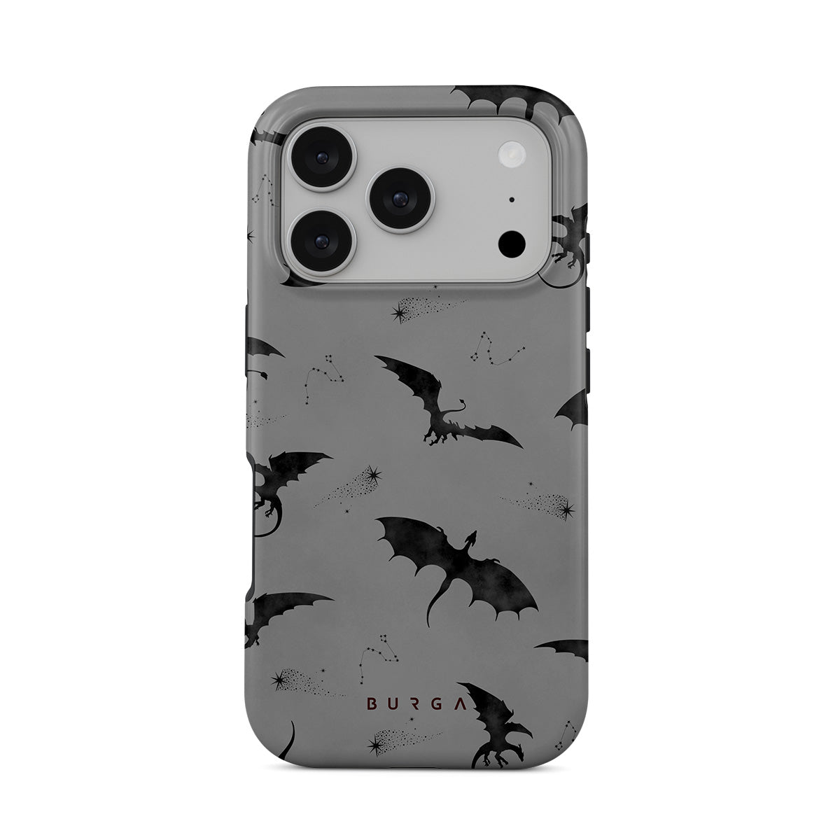 Questo design include: pipistrelli, draghi, cielo grigio, cieli notturni, creature oscure.