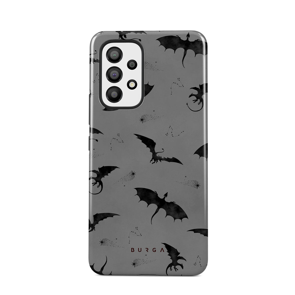 Questo design include: pipistrelli, draghi, cielo grigio, cieli notturni, creature oscure.