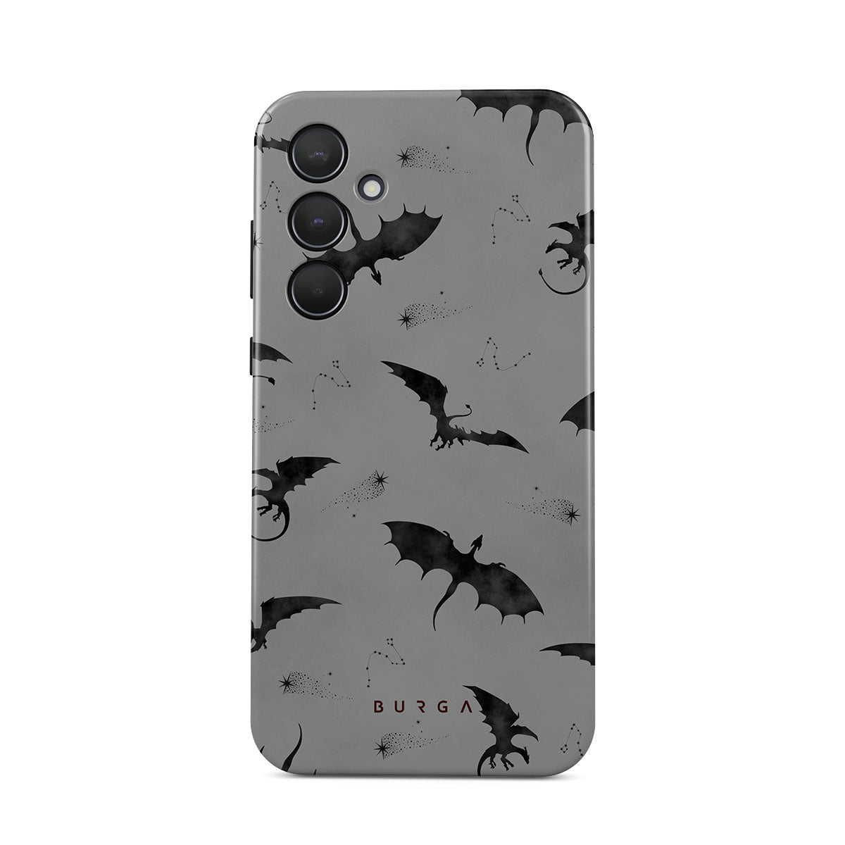 Questo design include: pipistrelli, draghi, cielo grigio, cieli notturni, creature oscure.