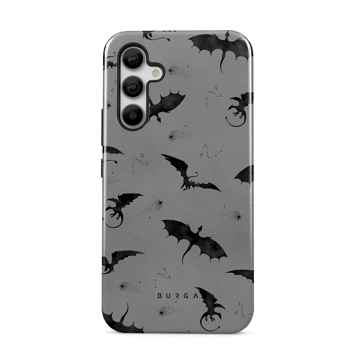 Questo design include: pipistrelli, draghi, cielo grigio, cieli notturni, creature oscure.