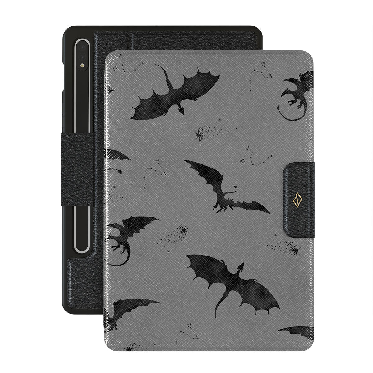 Questo design include: pipistrelli, draghi, cielo grigio, cieli notturni, creature oscure.