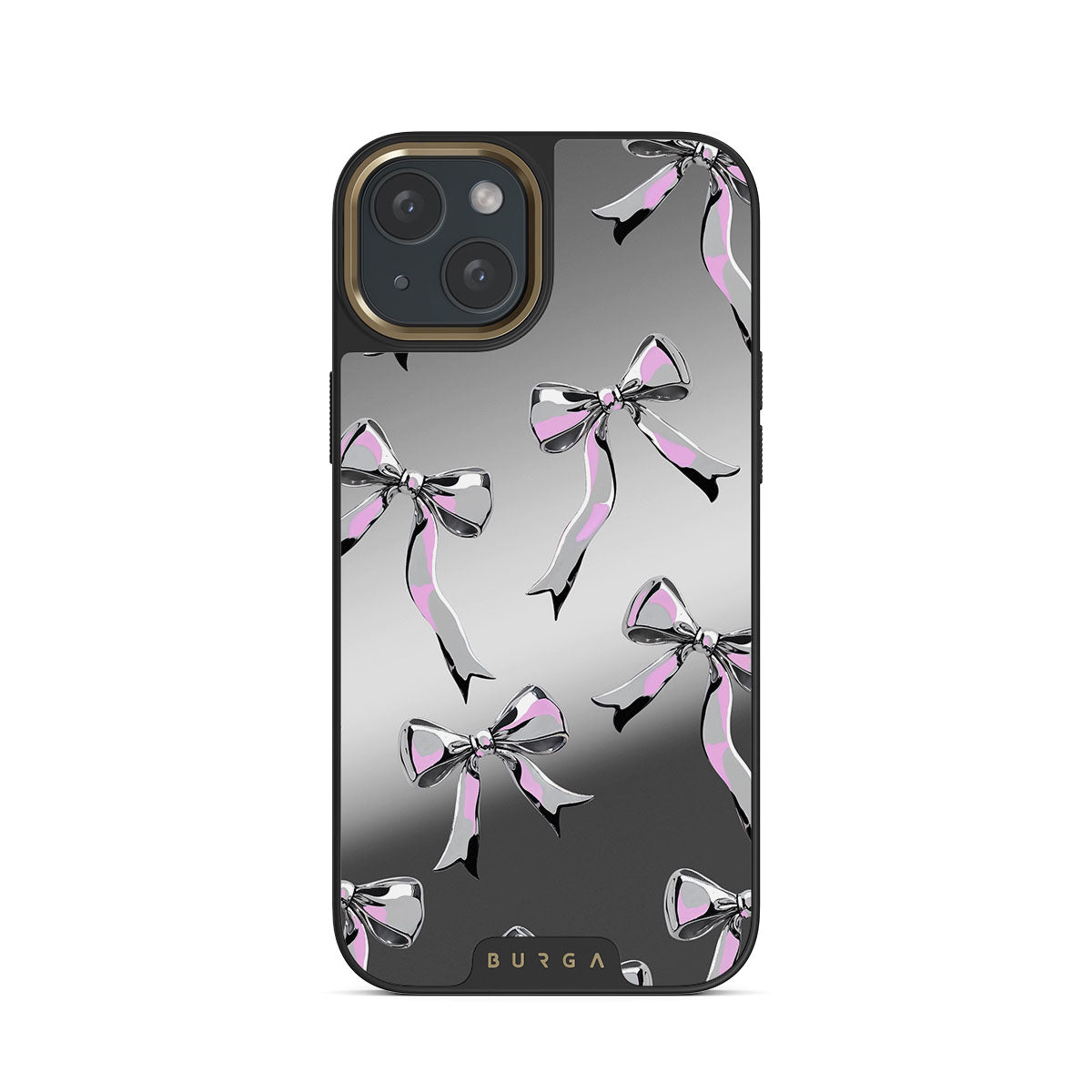 Questo design include: fiocchi rosa, nastri, colori pastello, dettagli femminili, specchio