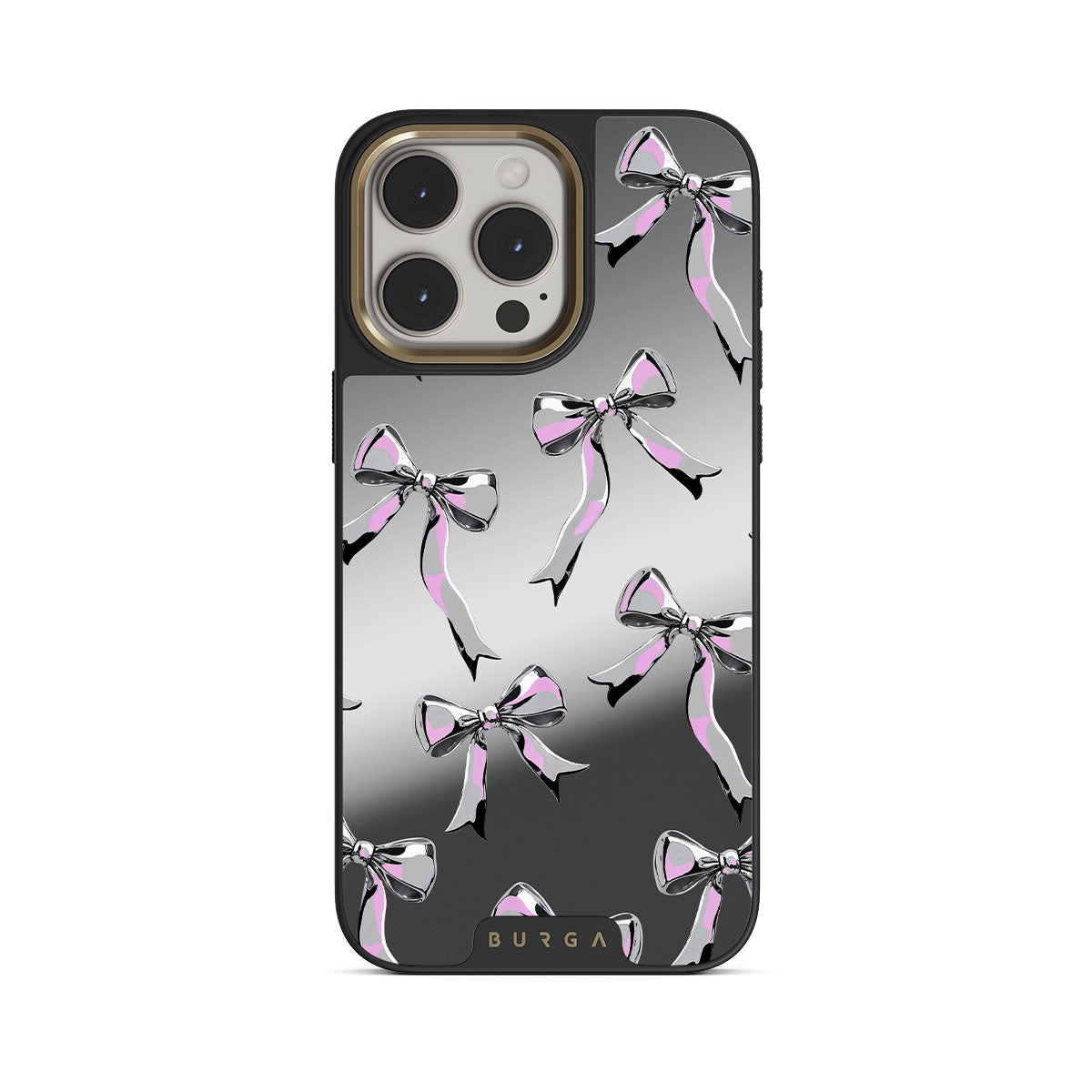 Questo design include: fiocchi rosa, nastri, colori pastello, dettagli femminili, specchio