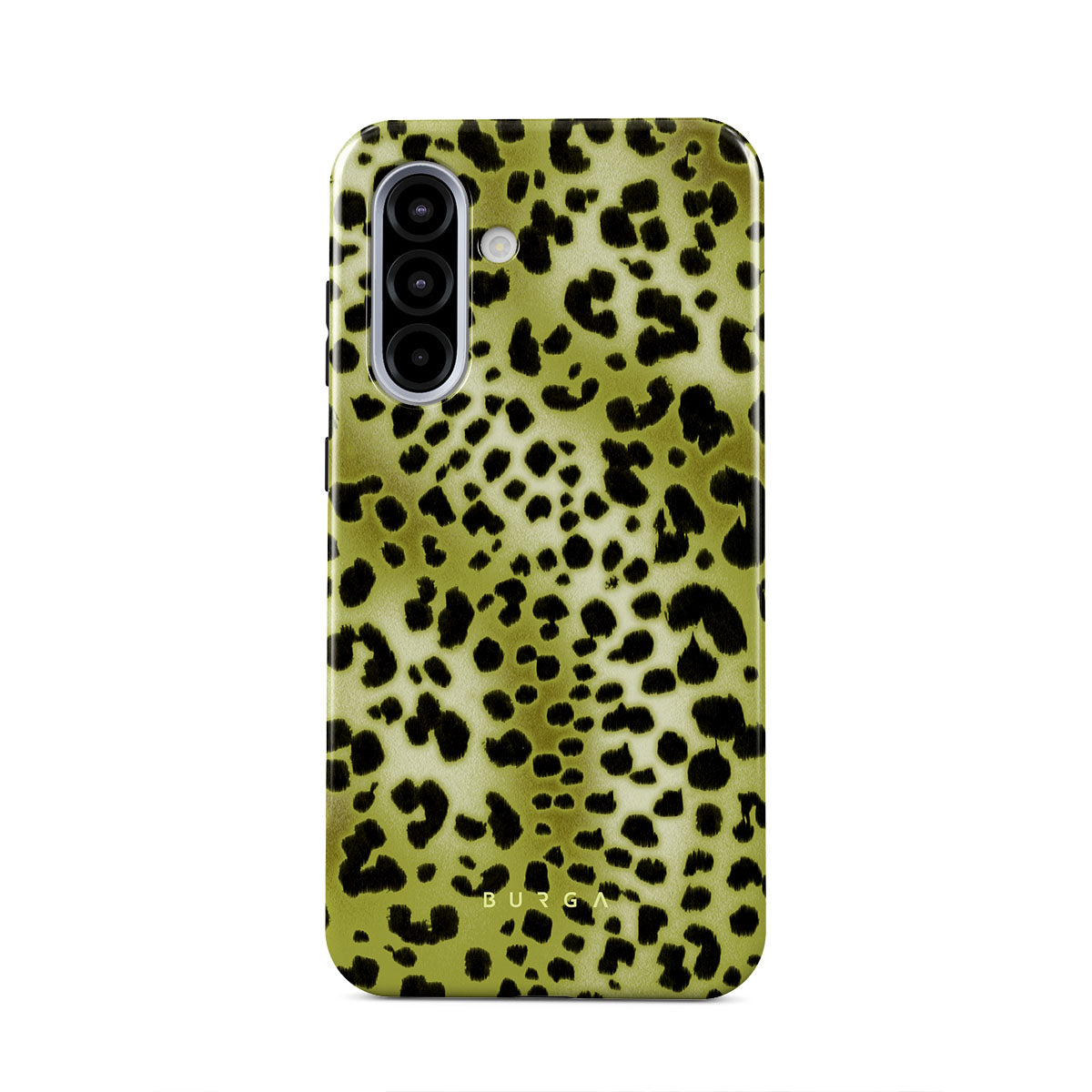 Questo design include: stampa leopardata, macchie, verde oliva, stampa animale.