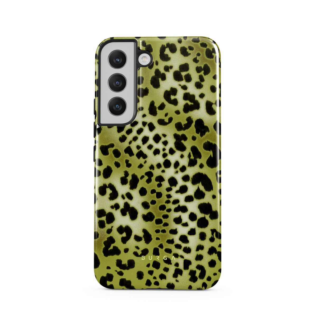 Questo design include: stampa leopardata, macchie, verde oliva, stampa animale.