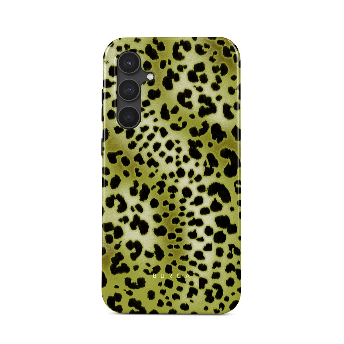 Questo design include: stampa leopardata, macchie, verde oliva, stampa animale.