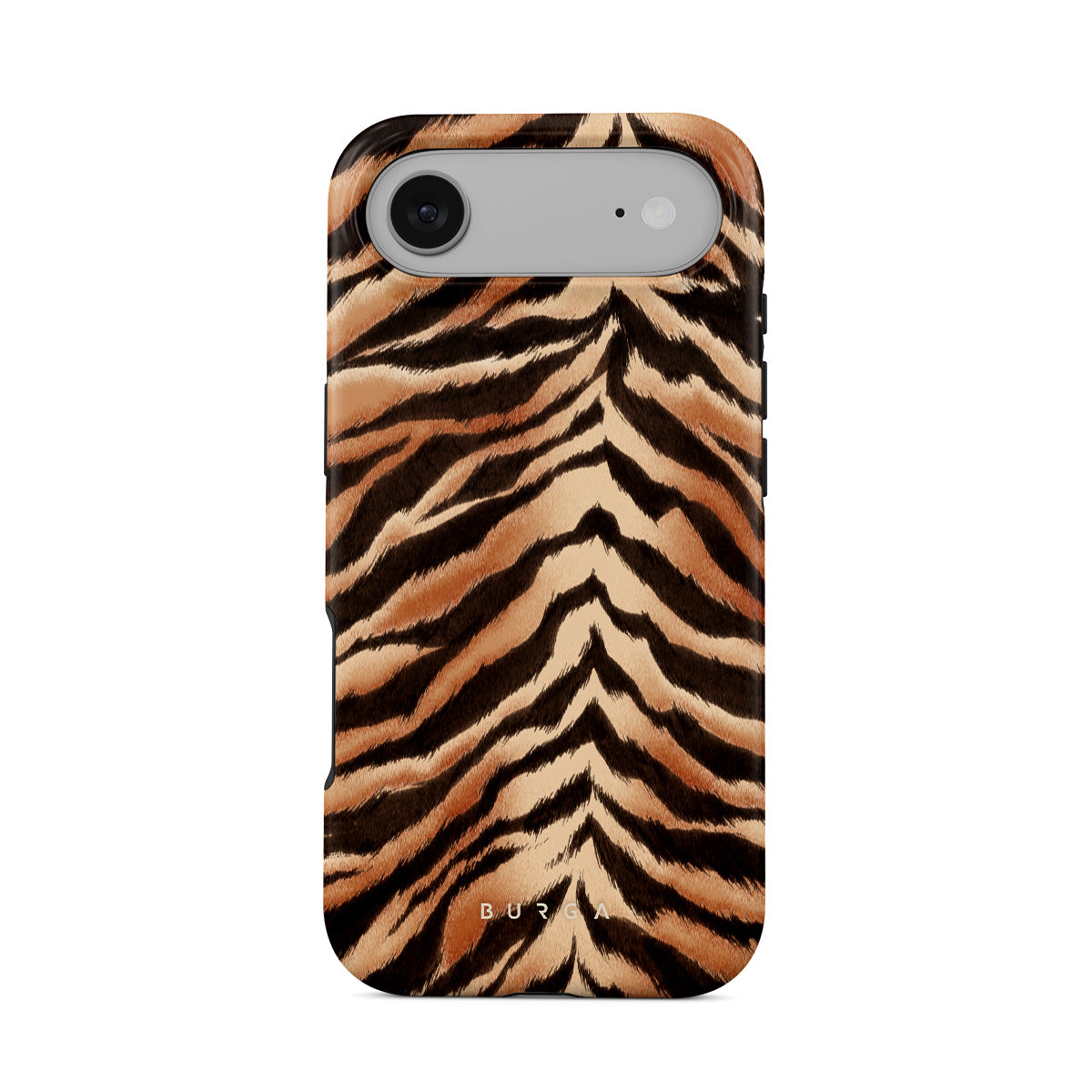 Questo design include: strisce di tigre, nero, arancione, stampa animale, motivo audace.
