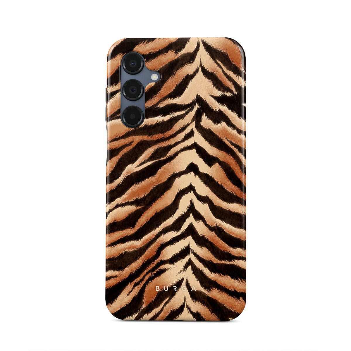 Questo design include: strisce di tigre, nero, arancione, stampa animale, motivo audace.