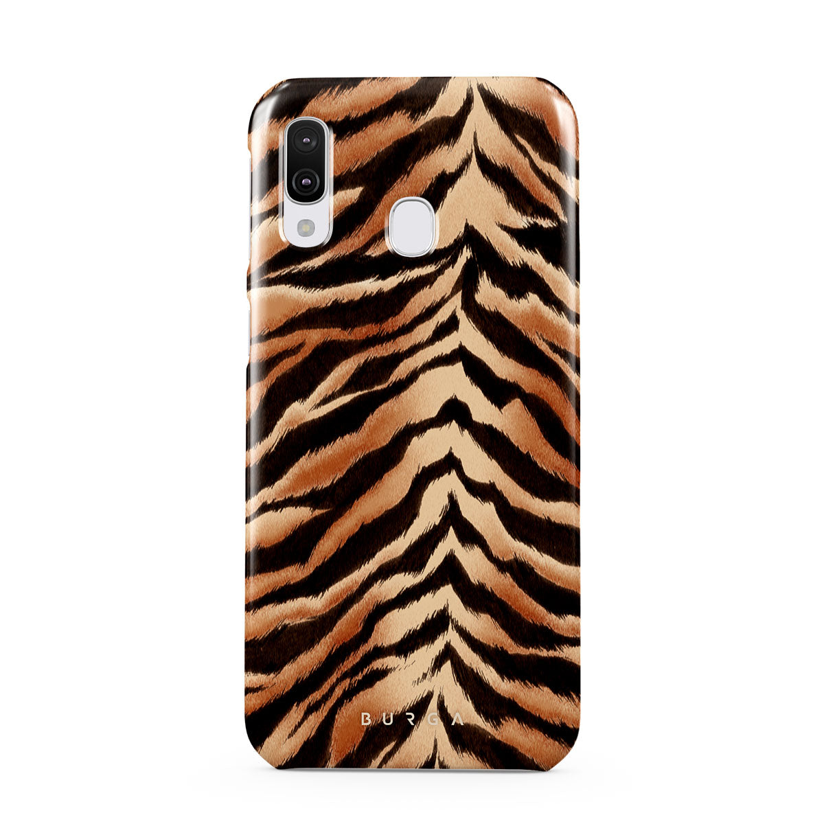 Questo design include: strisce di tigre, nero, arancione, stampa animale, motivo audace.