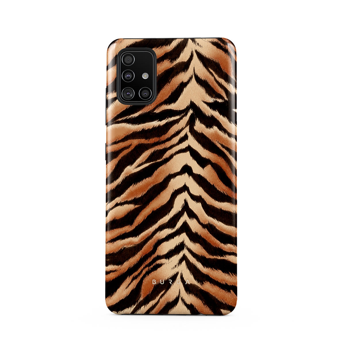 Questo design include: strisce di tigre, nero, arancione, stampa animale, motivo audace.