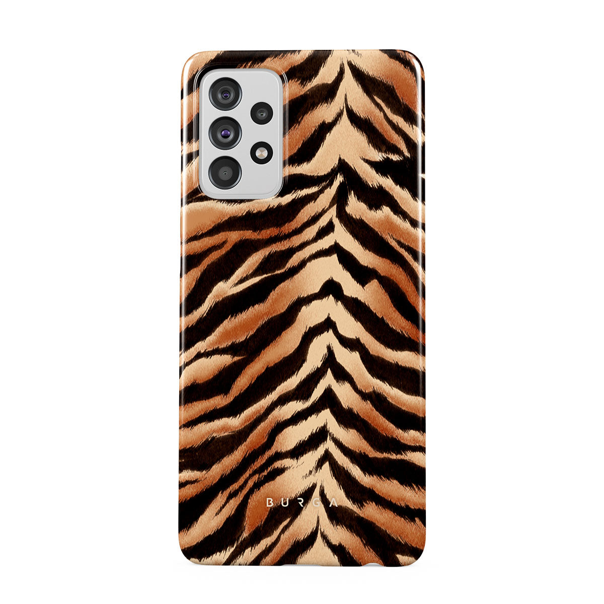 Questo design include: strisce di tigre, nero, arancione, stampa animale, motivo audace.