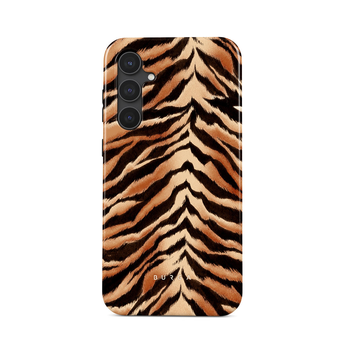 Questo design include: strisce di tigre, nero, arancione, stampa animale, motivo audace.