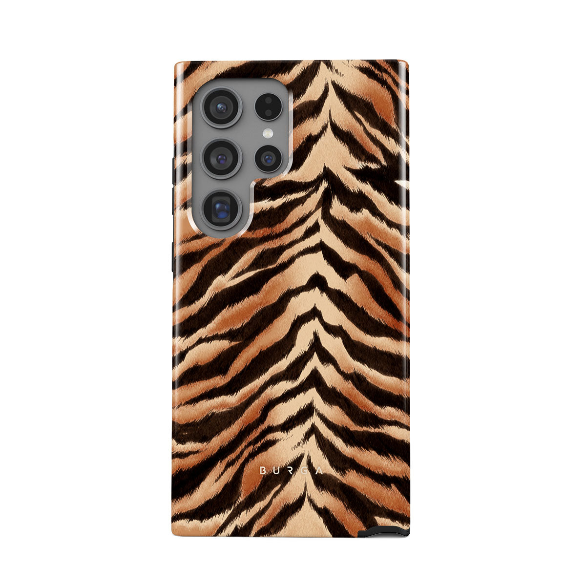 Questo design include: strisce di tigre, nero, arancione, stampa animale, motivo audace.