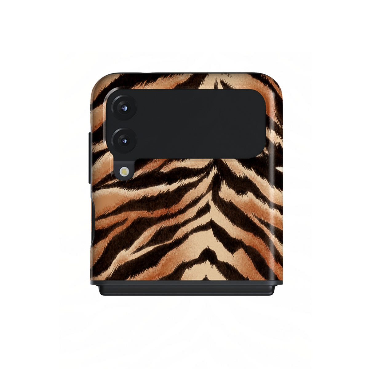 Questo design include: strisce di tigre, nero, arancione, stampa animale, motivo audace.