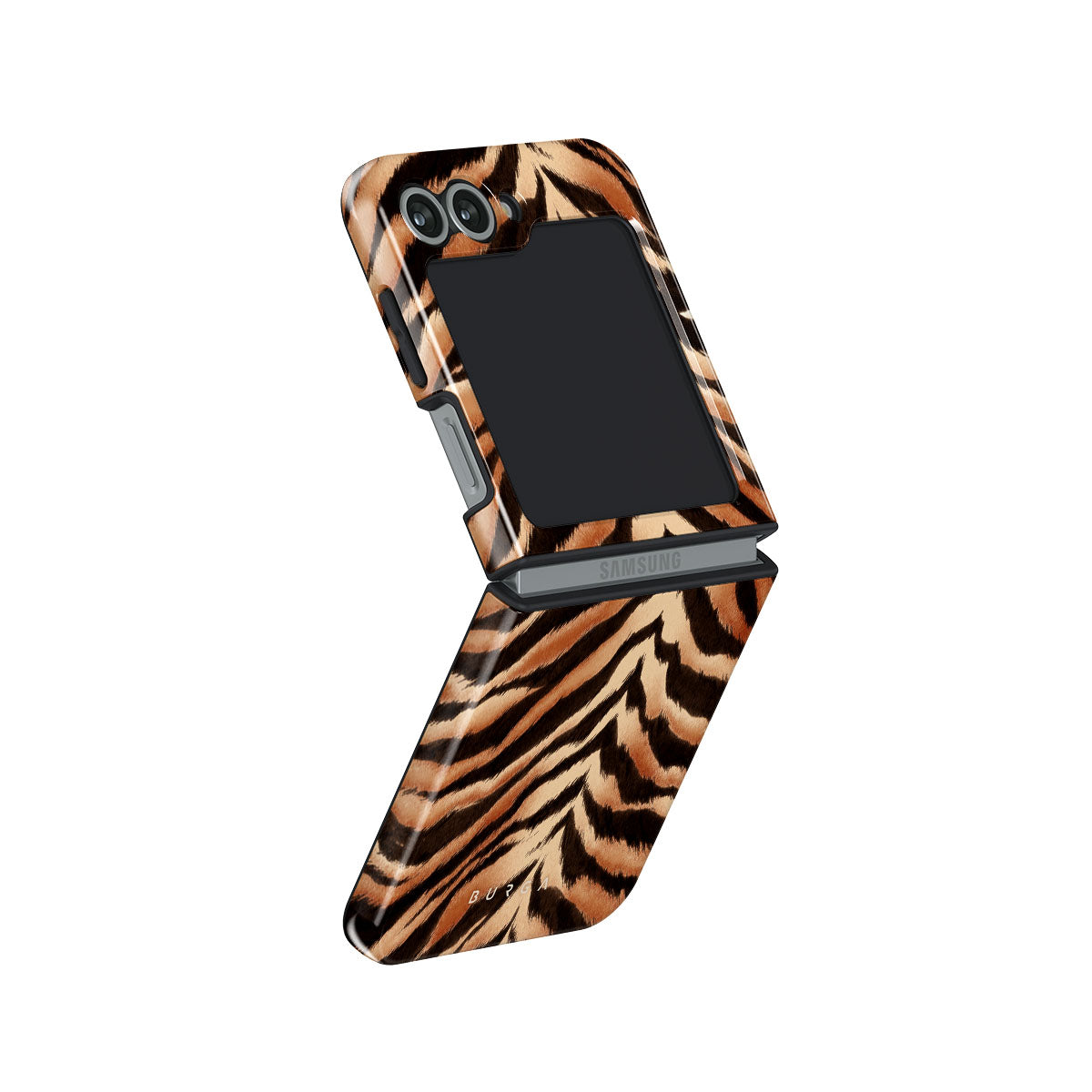 Questo design include: strisce di tigre, nero, arancione, stampa animale, motivo audace.