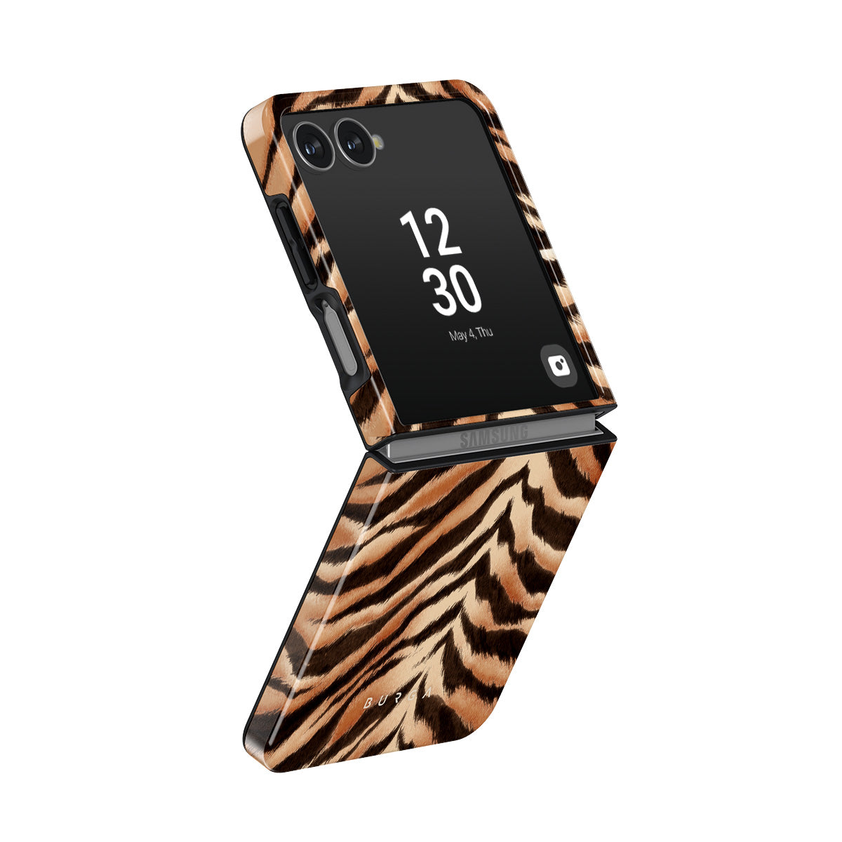 Questo design include: strisce di tigre, nero, arancione, stampa animale, motivo audace.