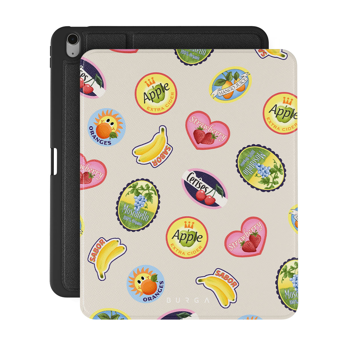 Questo design include: Banane, francobolli, ciliegie, mele, arance, fragole, colori vivaci, accenti di agrumi, motivi fruttati, motivi tropicali.