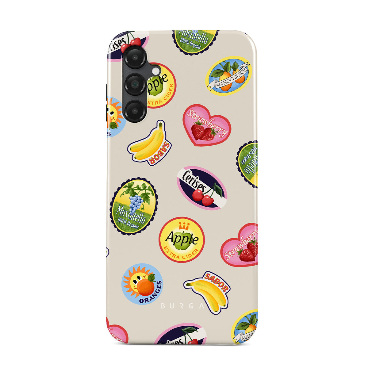 Questo design include: Banane, francobolli, ciliegie, mele, arance, fragole, colori vivaci, accenti di agrumi, motivi fruttati, motivi tropicali.