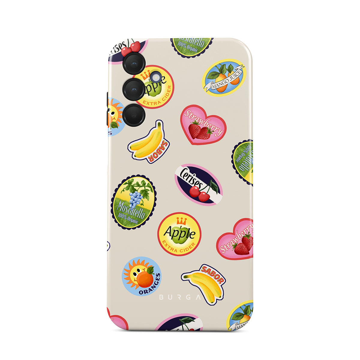 Questo design include: Banane, francobolli, ciliegie, mele, arance, fragole, colori vivaci, accenti di agrumi, motivi fruttati, motivi tropicali.