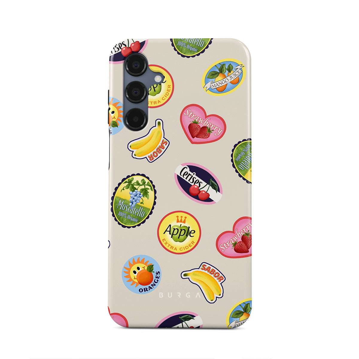 Questo design include: Banane, francobolli, ciliegie, mele, arance, fragole, colori vivaci, accenti di agrumi, motivi fruttati, motivi tropicali.
